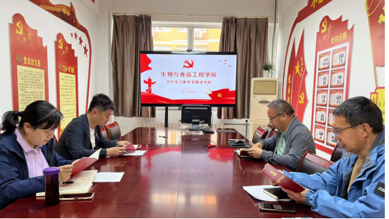 4月30日上午,beat365唯一官方网站党总支党纪学习教育读书班在A13-210举办,党总支书记赵驰欣主持并作动员讲话,全体领导班子成员参加学习与研讨。