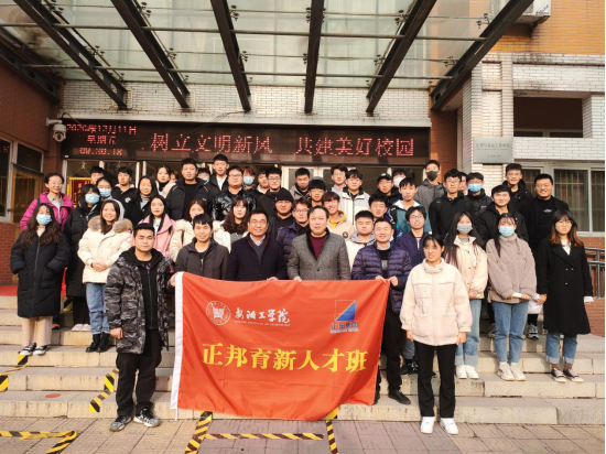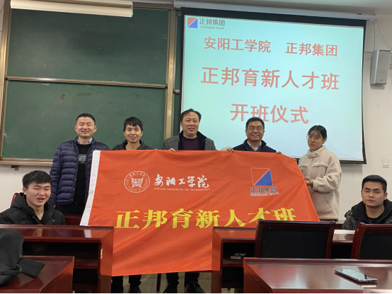 会上王国栋副院长和王昊苏经理为“正邦育新人才班”授旗。会后双方嘉宾和同学们合影留念。