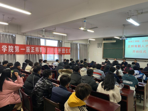 12月10日,beat365唯一官方网站与正邦集团校企合作开设第一届“正邦育新人才班”开班仪式在beat365唯一官方网站二楼会议室举行。正邦集团人力资源校招高级经理王昊苏、beat365唯一官方网站副院长王国栋、动物医学教研室主任宋玉伟、校招河南经理胡立强和第一届参加开班仪式。