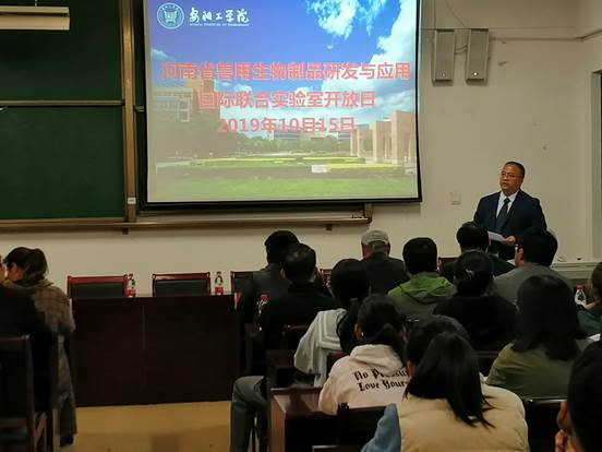 10月15日,学院举行河南省兽用生物制品研发与应用国际联合实验室开放日活动。汤阴县医药办公室、河南金百合生物科技股份有限公司、鹤壁链多多公司、林州中农颖泰公司等多家单位领导或技术人员出席活动。