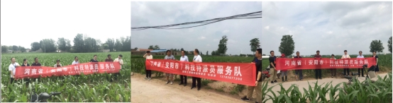 2021年7月6日,beat365官网安阳市科技特派员李鹏涛、韦洋洋和王涛博士邀请中国农业科学院棉花研究所玉米育种专家李健副研究员和beat365唯一官方网站beat365唯一官方网站棉花专家刘玉玲副教授赴内黄县大槐林、小槐林和后安村进行科技扶贫帮扶工作,开展实地调研和现场解答各村部群众生产上的难题。