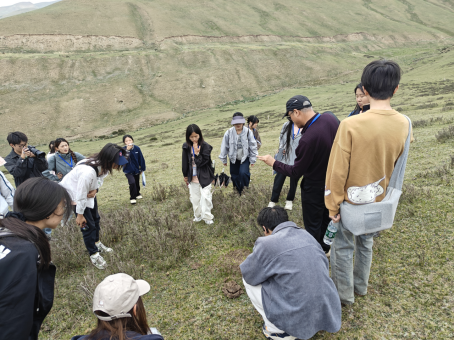6月8日,活动组织全体师生前往天祝高寒草原生态系统国家野外科学观测研究站进行实地考察。在广袤的草原上,指导老师围绕高寒草地植被的群落特征、生态功能与可持续管理等内容进行了生动详实的现场教学。同学们亲身感受了草原文化的独特魅力,通过实地观察与专业讲解,对草地生态系统有了更为直观和深刻的认识。