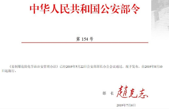 第一条为加强易制爆危险化学品的治安管理,有效防范易制爆危险化学品治安风险,保障人民群众生命财产安全和公共安全,根据《中华人民共和国反恐怖主义法》《危险化学品安全管理条例》《企业事业单位内部治安保卫条例》等有关法律法规的规定,制定本办法。