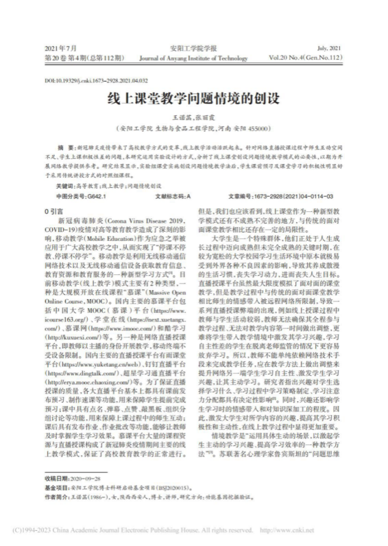 7.线上课堂教学问题情境的创设,beat365唯一官方网站学报