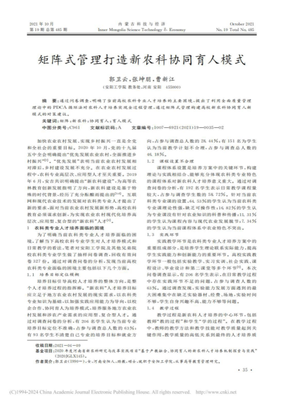 8.矩阵式管理打造新农科协同育人模式,内蒙古科技与经济
