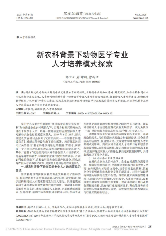 3.新农科背景下动物医学专业人才培养模式探索,黑龙江教育(理论与实践)