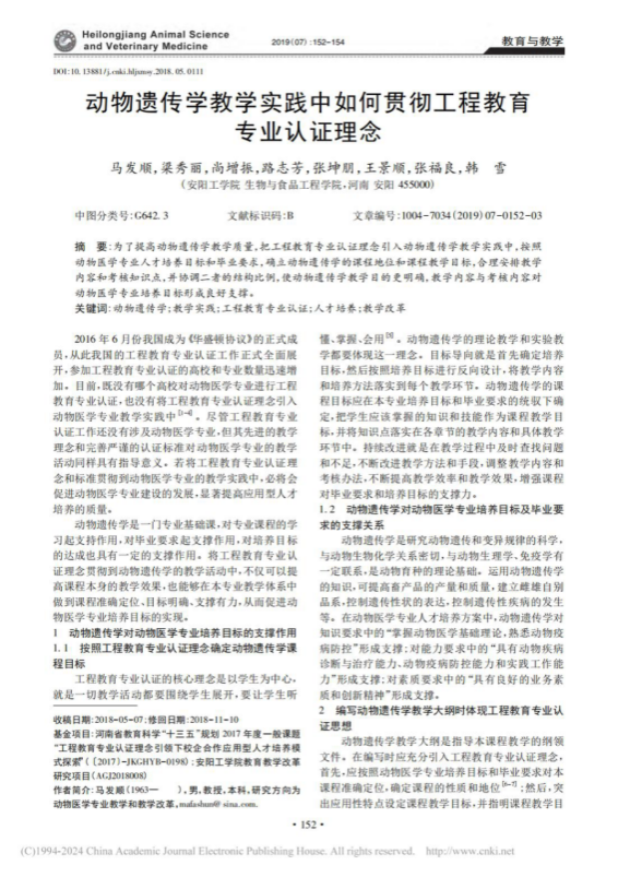2.动物遗传学教学实践中如何贯彻工程教育专业认证理念,黑龙江畜牧兽医