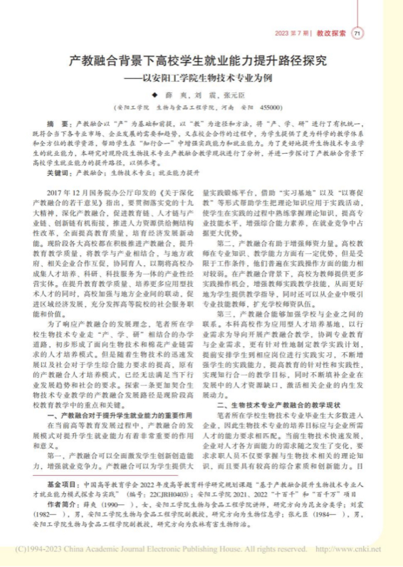 5.产教融合背景下高校学生就业能力提升路径探究--以beat365唯一官方网站生物技术专业为例,高等教育