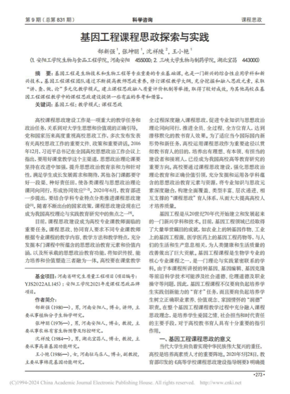 1.基因工程课程思政探索与实践,科学咨询