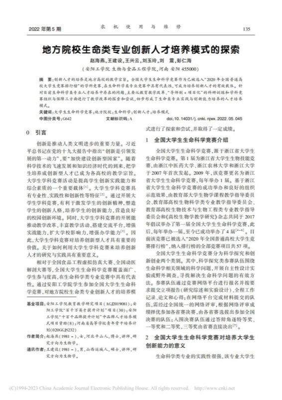 6.地方院校生命类专业创新人才培养模式的探索,农机使用与维修