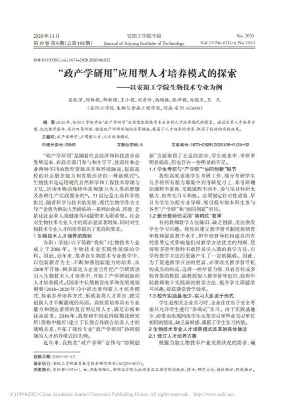 4.“政产学研用”应用型人才培养模式的探索--以beat365唯一官方网站生物技术专业为例,beat365唯一官方网站学报