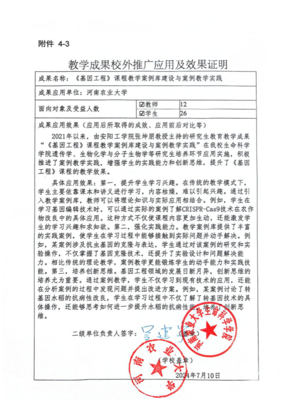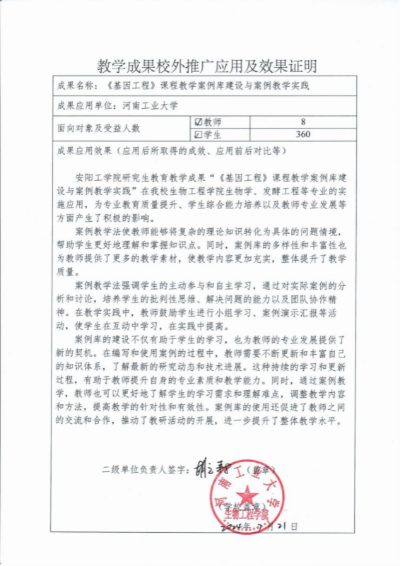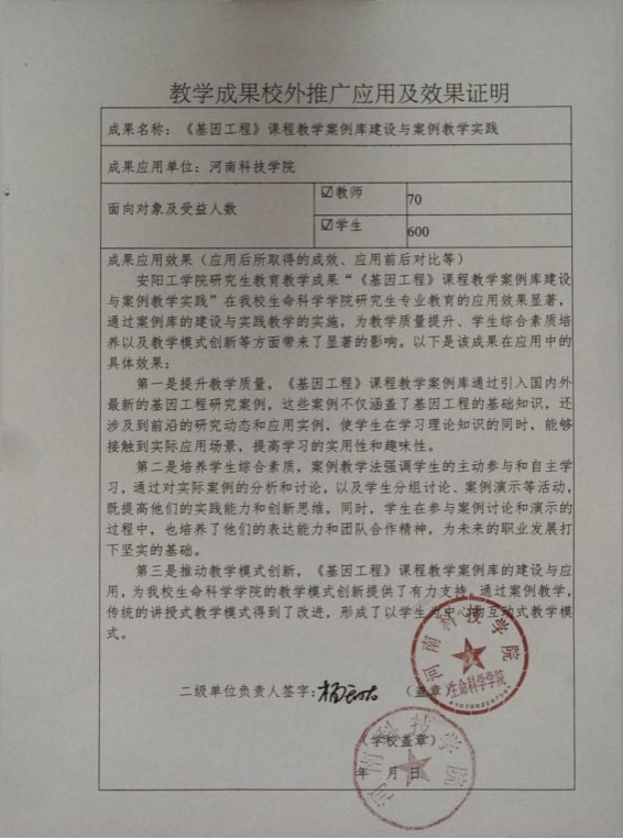 《基因工程》课程教学案例库建设与案例教学实践-推广应用