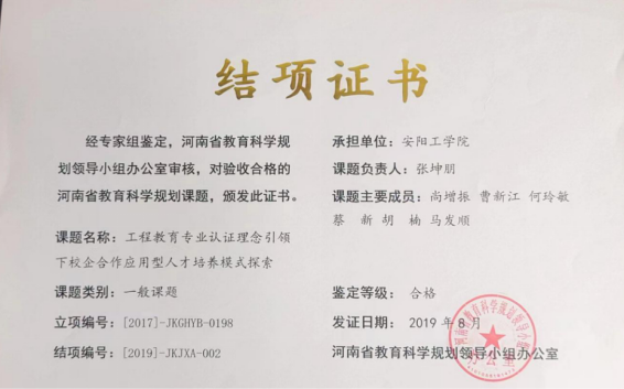 (1)2020年度河南省新农科研究与实践改革项目鉴定证书