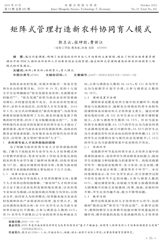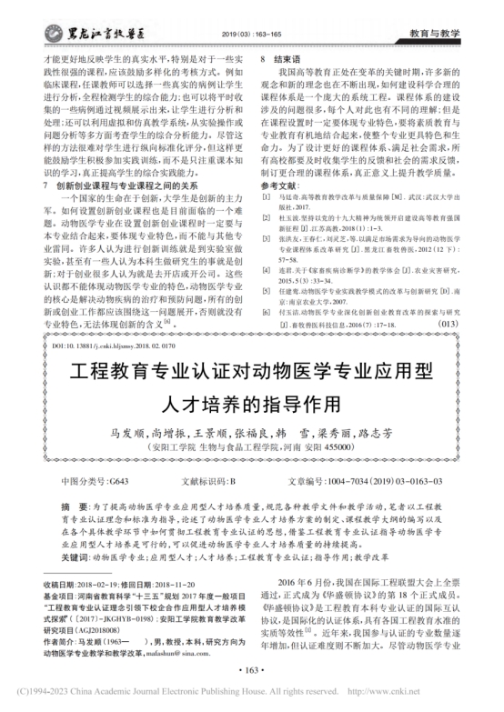 (2)工程教育专业认证对动物医学专业应用型人才培养的指导作用